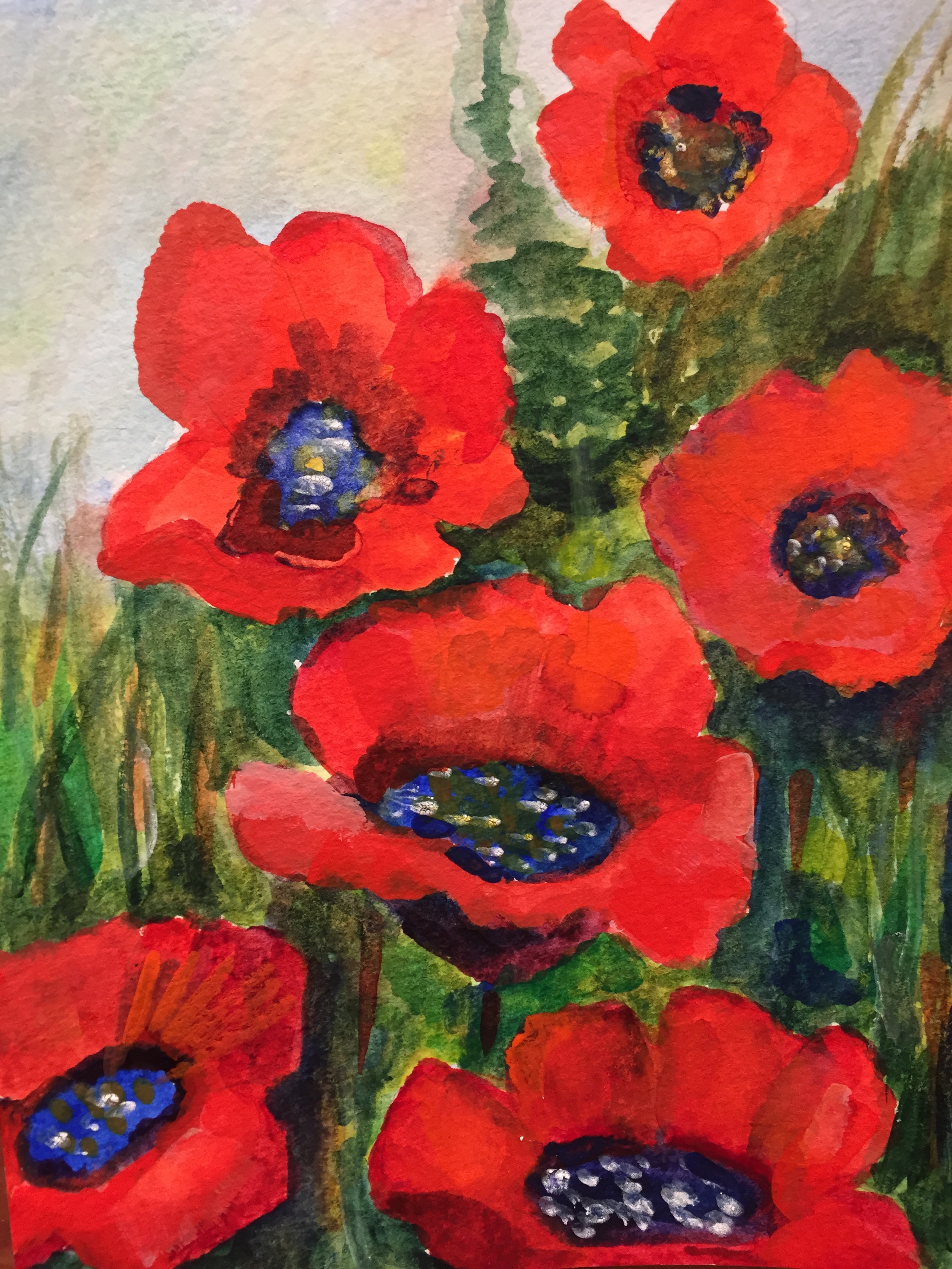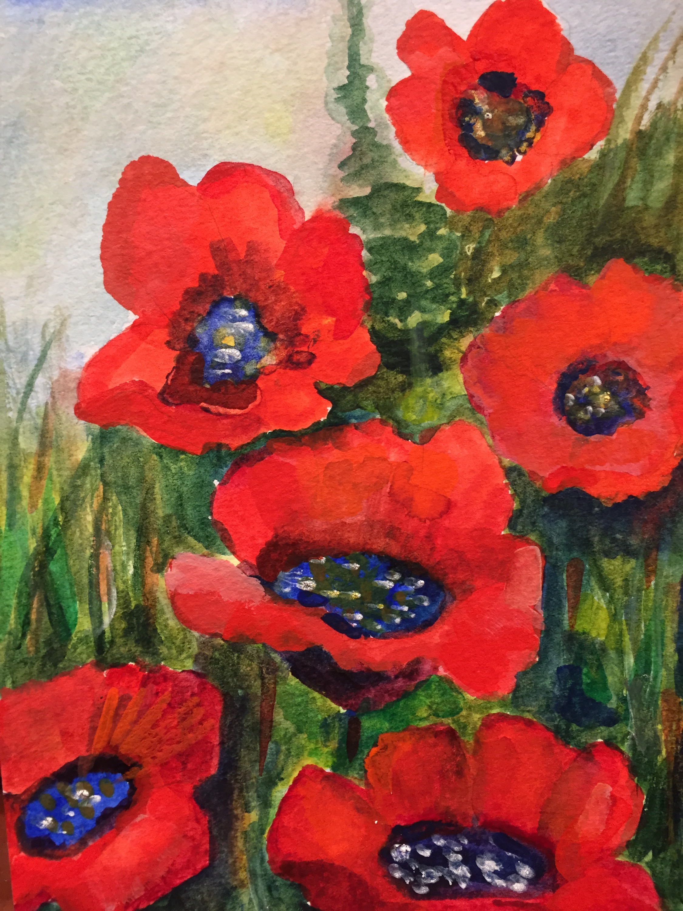 زهر الخشخاش بألوان مائية